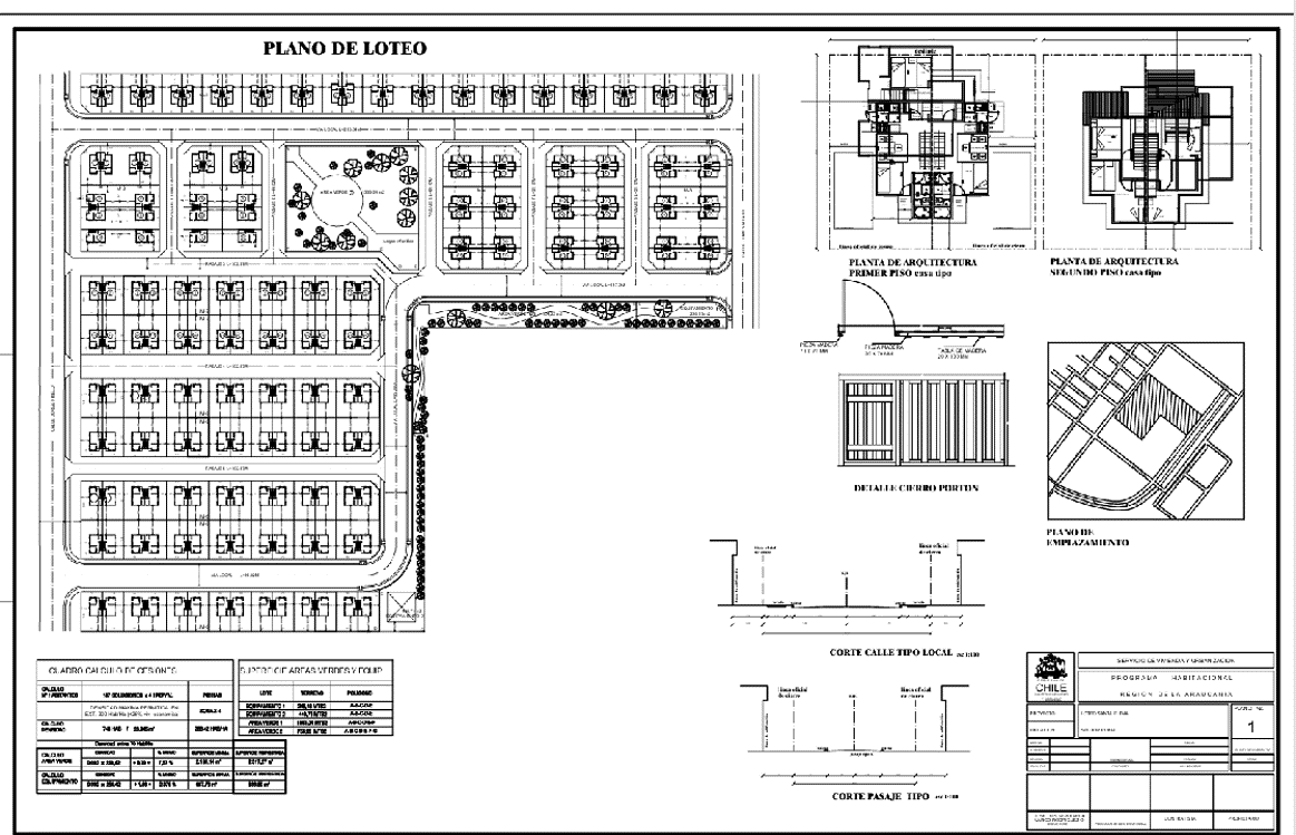 Desarrolla cabida de loteos y diseño de áreas verdes en Villa los Parques 1 al 7, para el Fondo Solidario Para la Vivienda.
